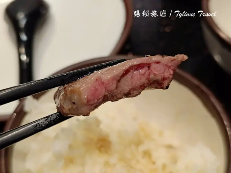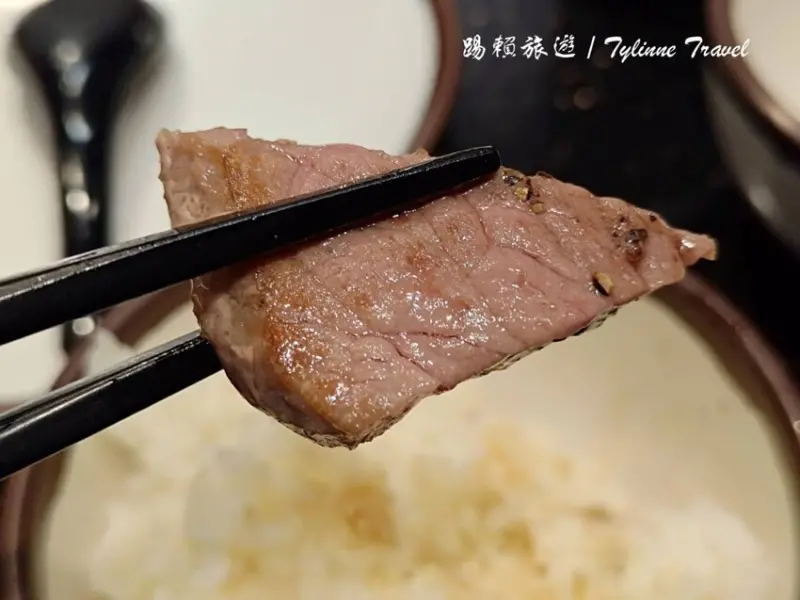 沙朗的肉質吃起來紮實又彈牙,咀嚼的過程中牛肉香味非常濃郁不斷充斥在嘴中