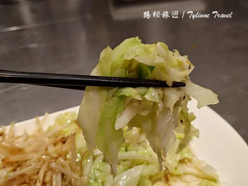 豆芽菜在大火拌炒下搭配醬汁吃起來非常有味道,跟高麗菜都有把水分保留在裡面,口感爽脆又多汁