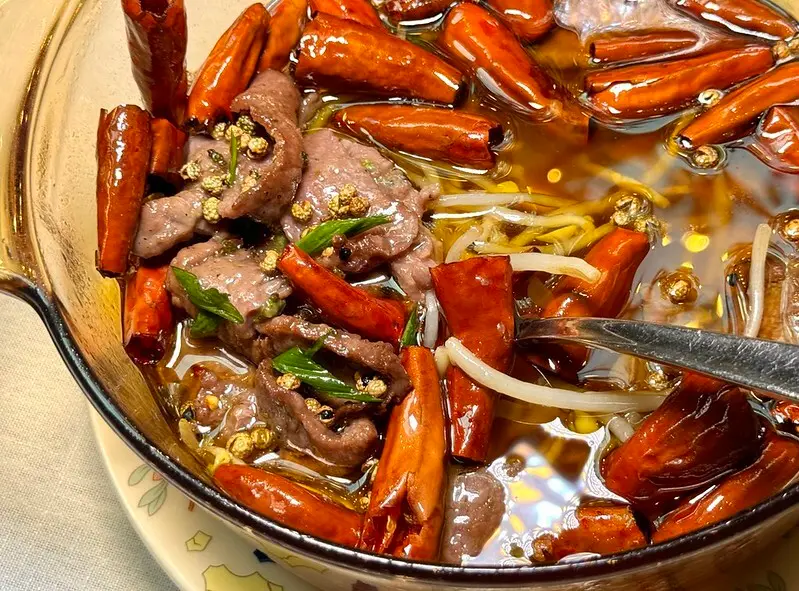 青花椒大塊毛肚-大塊毛肚涮在青花椒濃湯中,麻麻麻麻得討人喜歡,麻麻麻麻得讓人味醉,這湯汁除了有青花椒的「亮」麻記憶外,湯汁帶點像是酸湯魚的鮮,讓人口齒同留香,大塊毛肚切片,吃起來爽脆帶微嚼勁,毛肚葉片吸入滿滿的青花椒湯汁,遠比涮毛肚來得好吃許多。