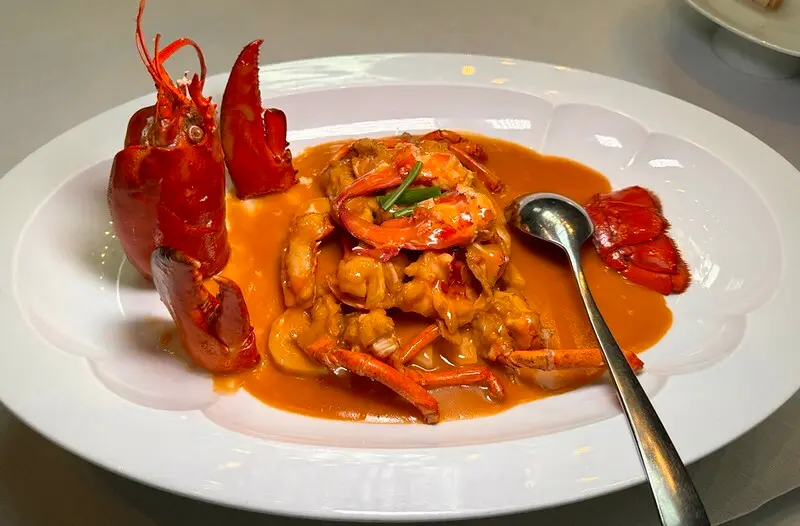 拾久波士頓龍蝦燒年糕,這道有一點寧波料理的影子,使用整隻波士頓龍蝦。來說,我很愛寧波燒(炒)年糕,但在台北如今不容易吃到這滋味。拾久這一盤很是濃郁,用粵菜料理(螃蟹)的手法燒出波士頓龍蝦的鮮郁的醬汁,再同年糕一起翻炒入味。波龍的肉、年糕的脆Q各有巧妙、滋味卻又相輔相乘。