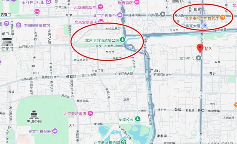 北京拾久(東三環中路店),位於北京電視台周邊,離北京明城牆遺址公園也不遠,交通地理上算是蠻方便的