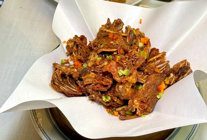 酥炸椒鹽鴨架也是台灣烤鴨常見的手法,但這裡比較特別的是炸過的酥更為明顯,椒鹽的氣息略重,但十足十的下酒良伴。