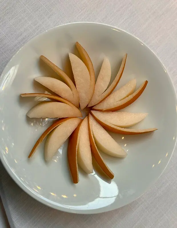 這一趟來,發現北京的餐館現下都是水果走在前方,說法是讓腸胃暖身,也促進食慾,同時有助於之後的消化,大反我們飯後水果的常態。這天的冬梨子非常好吃,口感細緻,梨汁飽滿鮮甜。
