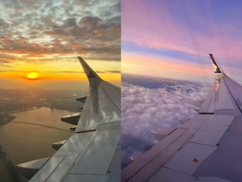 雖然意猶未盡,但也到旅程的最後一刻了~我們搭乘酒店免費的穿梭巴士到澳門機場,買些澳門伴手禮回台灣,回程的飛機上看到超夢幻的夕陽晚霞,期待下次再來澳門玩!