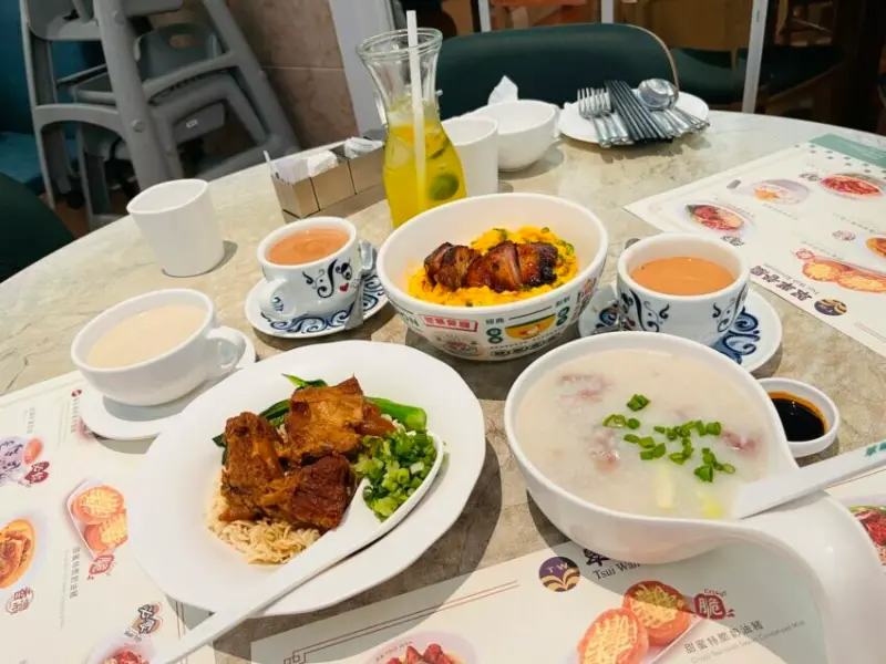 在敞篷巴士的終點站「銀河酒店」下車後,直奔銀河翠華餐廳吃晚餐,點了神之叉燒飯、富貴豬軟骨撈麵、滑牛粥,果然好吃~可惜胃已經沒有空間留給特脆奶油豬,留到下次再安排吧。