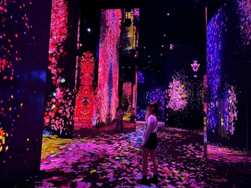 除了經典必拍的「花與人的窪谷」、「水晶宇宙」和繽紛的飄浮球球,我也很喜歡「世界從黑暗裏誕生」,觸碰牆上的漢字就會有對應的特效,充滿禪意。