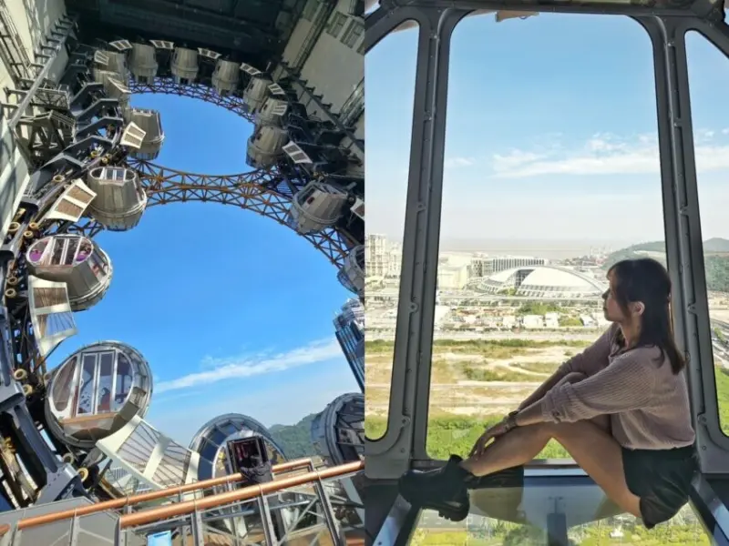 旅程最後一站,我們回到新濠影匯搭全球最高的「影滙之星」,摩天輪一趟大約18分鐘,在車廂上拍拍美照,眺望整個澳門市景。
