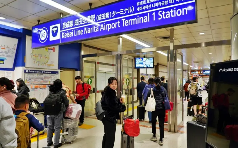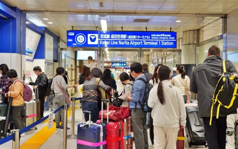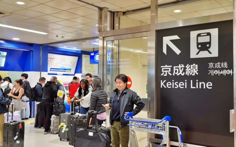 一下飛機出關後直接搭電扶梯下樓即可買到票並搭乘京成電鐵直達市區,行雲流水一氣呵成。