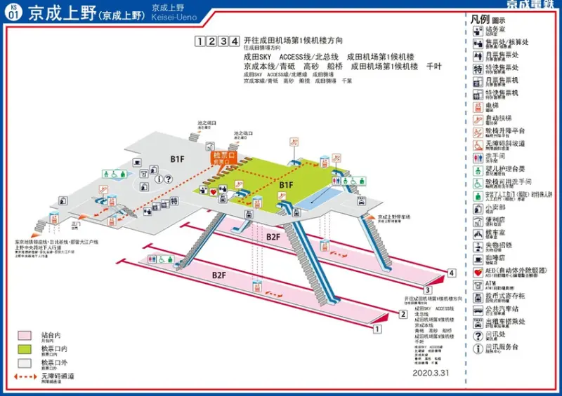 京成上野站可轉乘地鐵 銀座線/日比谷線/都營大江戶線。