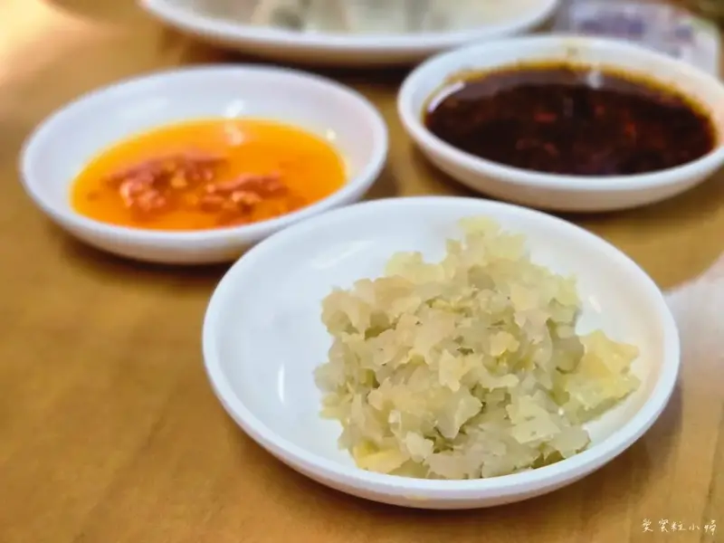 一樓和二樓都有座位區,二樓像是小閣樓會比較矮,身高較高站起來要稍微低頭。櫃檯前有放酸菜、蔥花自取,一樓和二樓分別都有擺放醬油、辣椒醬等調味料。