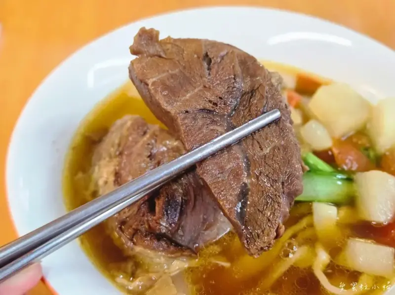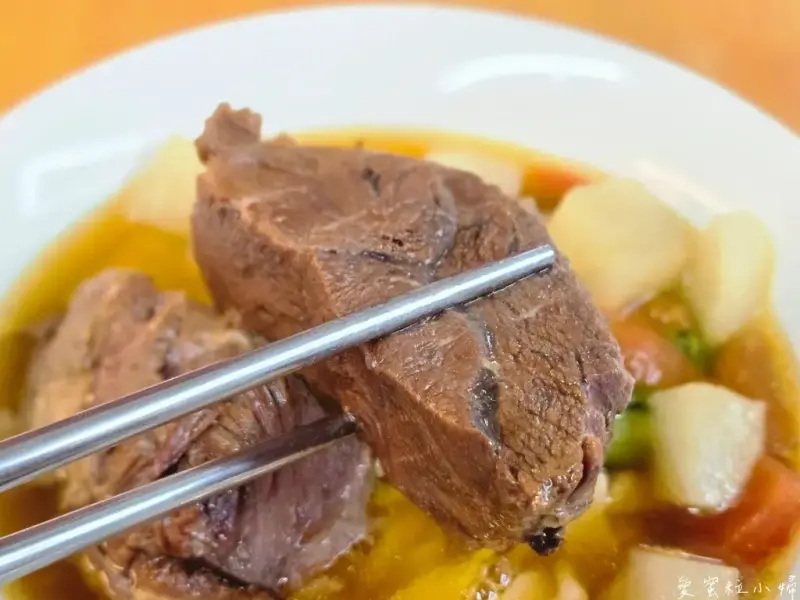 用筷子把牛肉分成小塊,還沒覺得這麼大塊的肉會有多嫩,直到送入口中,牛肉既入味又嫩,牛肉完全不柴、不油。