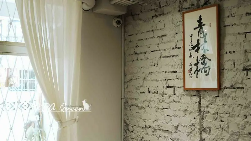 利用黎明新村一整片老宅去改造的,保留了原本的結構,把側邊可能是以前晾衣服的地方,改造成現在這個樣子。原本紅色的鐵門正門還留著,但出入口卻是把水泥圍牆拆掉後做出來的,到底是誰想的啦,也太厲害了。店裡面的座位不多,走的是純白色調,沒有太多複雜的裝飾,就是簡簡單單的感覺,讓人覺得很放鬆。