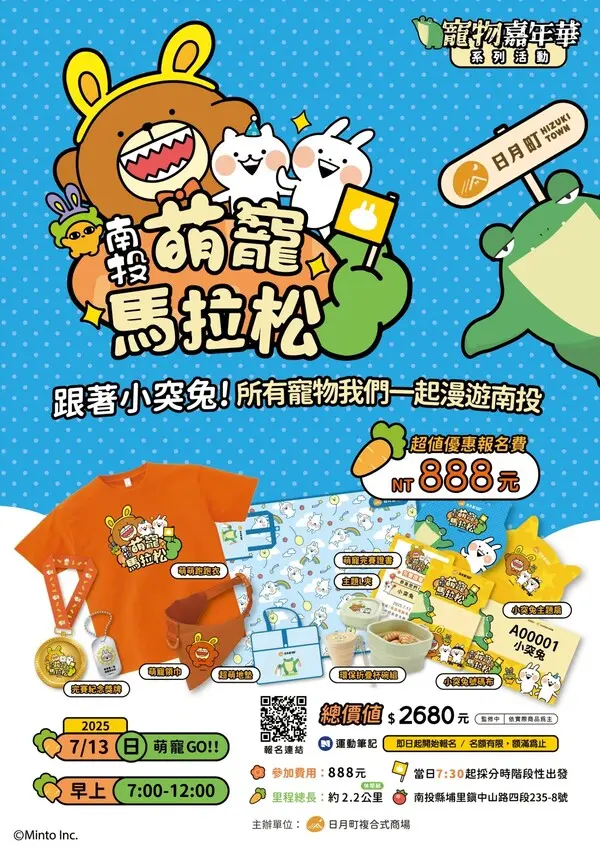 ▸ 贈品:萌萌紀念跑衣、完賽紀念獎章、環保折疊杯碗組、萌寵領巾、超萌地墊…等總價值超過2680元