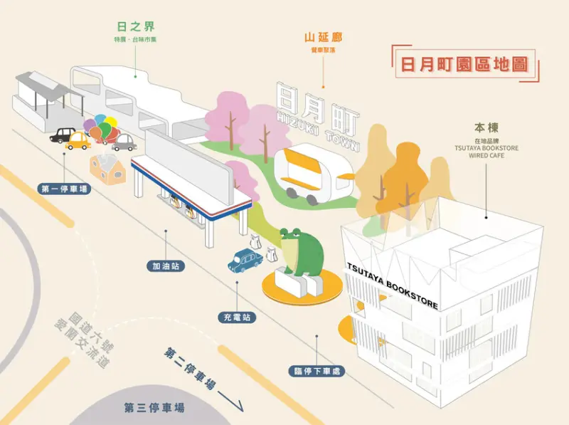 南投日月町園區分為三大區域,包含日月町本棟、山延廊餐車聚落、展覽市集與旁邊的熱門打卡景點繽紛氣球小屋,每一區域都有自己的販售亮點與特色。