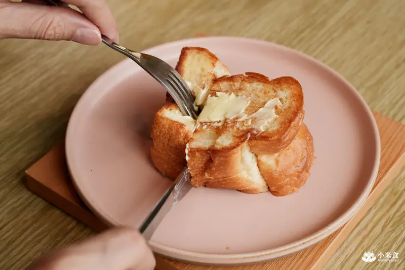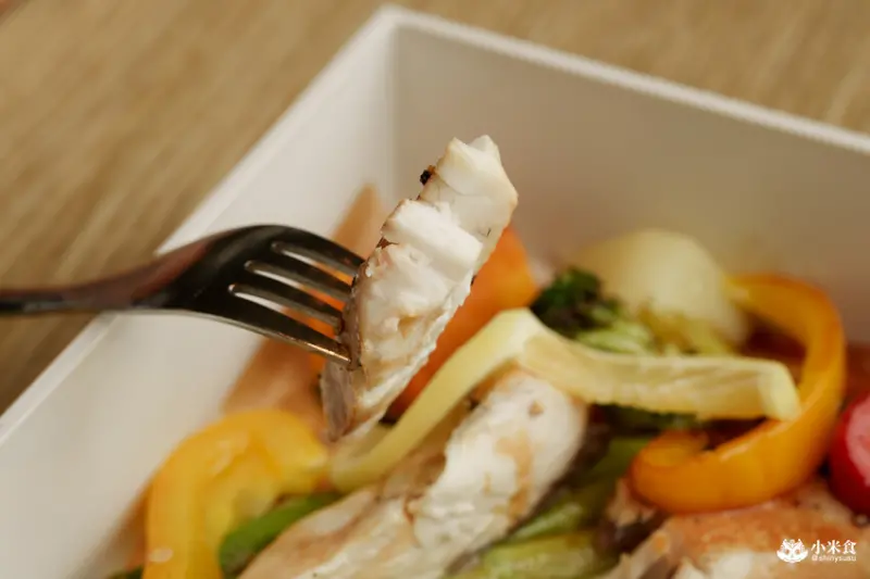 魚肉大塊又鮮嫩,搭配的烤時蔬也非常新鮮甘甜,南瓜與地瓜也都舔唇好吃;還有爽脆的生菜與甜脆唰嘴的義式醃菜做陪襯,搭佐的低麩質米吐司口感也做很好,吐司烤過有著迷人的酥鬆柔Q,配著奶油超滿足