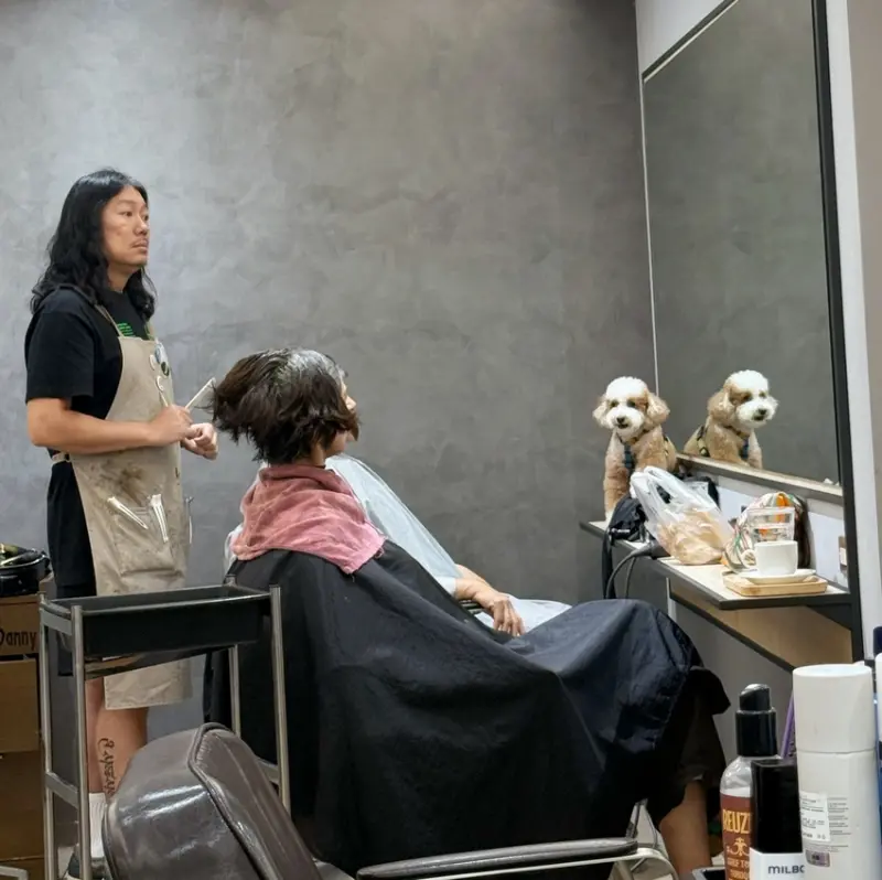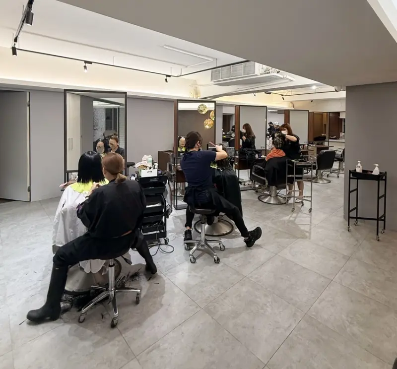 走上二樓生意也超級好,座位幾乎都坐滿了,但整體氛圍依然井然有序、舒適不擁擠,設計師們專注地為每位顧客打造專屬造型,讓人一看就很安心。