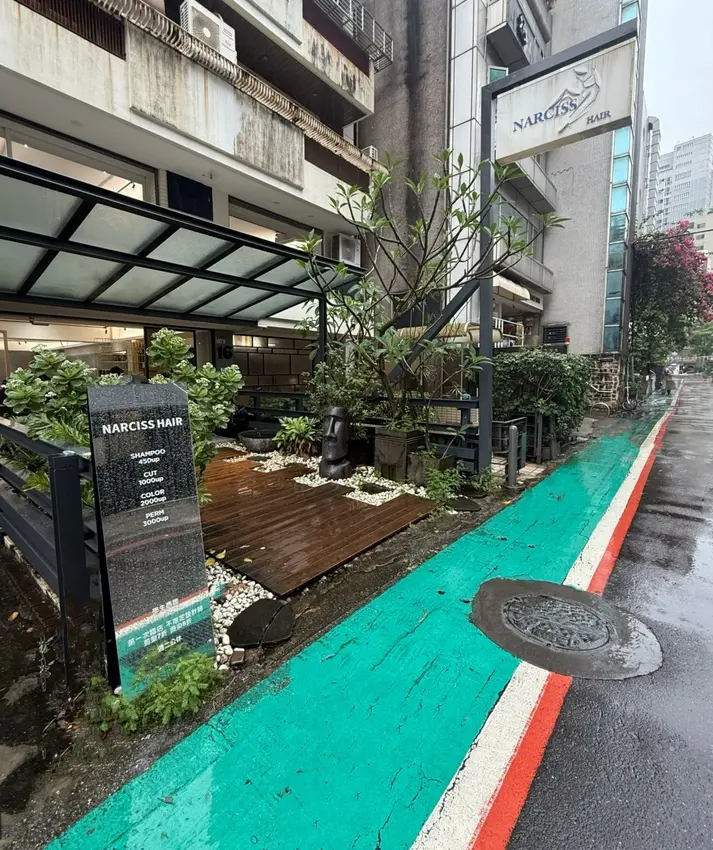 位於捷運淡水線中山站 4 號口走路大約 5 分鐘,NarcissHair有別於一般的髮廊,有個小巧溫馨的前院,不僅增添了整體舒適感,隨手一拍都是美美的網紅照。