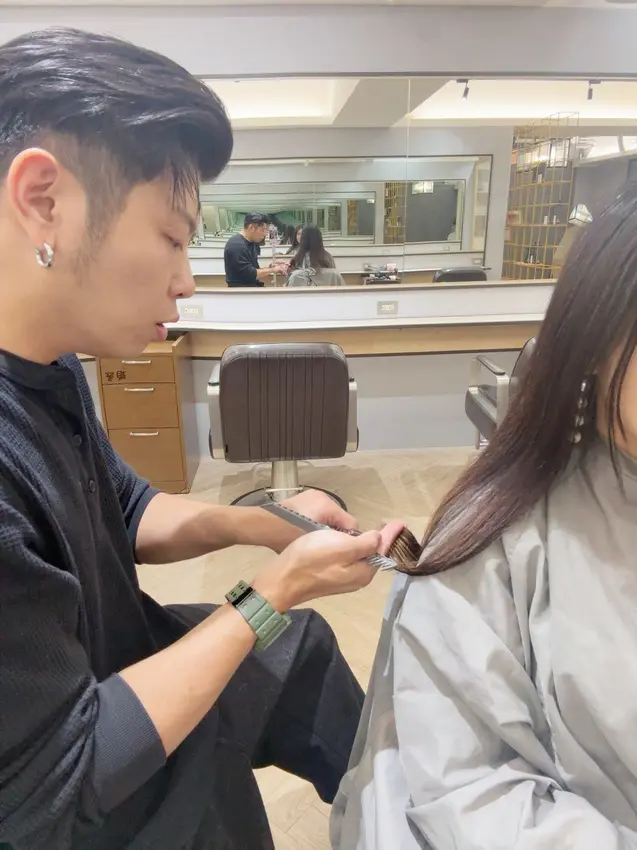 這次的設計師是個一米八幾的高個小哥哥-Anson,從業20年以上,技術一流,完全是手藝派的代表,經驗豐富卻毫無架子,溝通風格自然又細心。因為我有想要做的樣子,Anson會給予建議,專業的事交給專業的來,我完全放心!