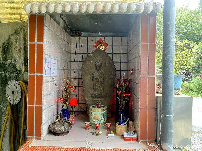 訊息獲知同五十一番,只知在菁山路99巷,所以就從99巷開始,沒想到99巷這麼長,歷經走錯再重來,沒想到我又走到荒蕪區,好在詢問後終於見到六十四番本人了;我真幸運,詢問的奶奶正好是供奉石佛的人家;六十四番位在民宅口,是這戶人家在供奉,所以來到此處記得要有禮貌哦,畢竟此處是人家的家門口