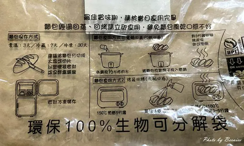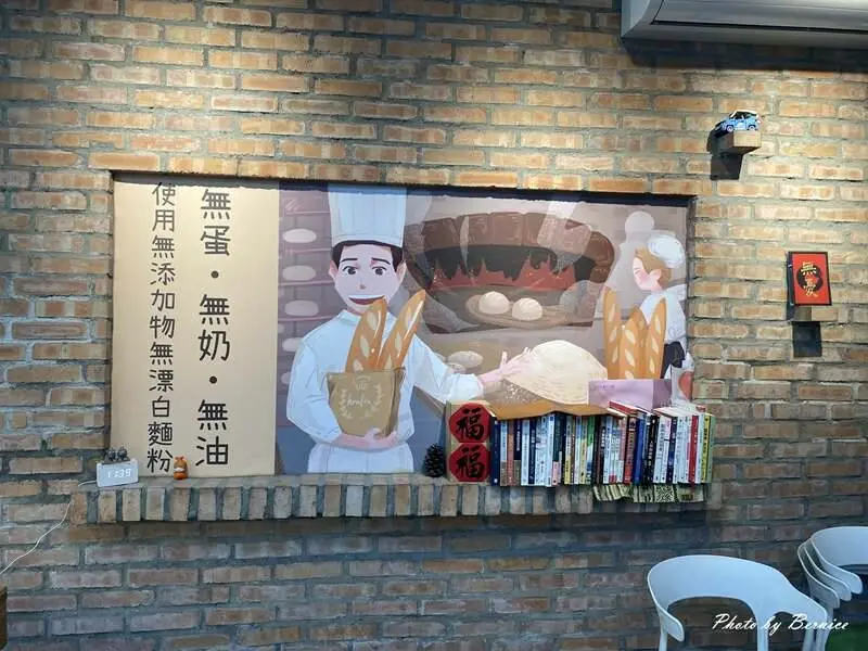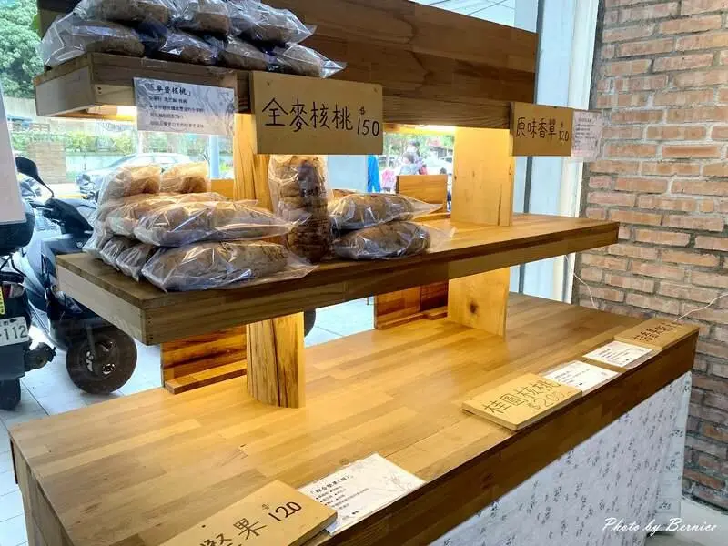 無蛋、無奶、無油,並使用無漂白、無人工添加的麵粉製作無添加、全素的窯烤麵包;共有五種經典口味分別是綜合堅果、原味香草、桔香果乾、全麥核桃、桂圓核桃,還有五六日限定的莓果多多,更有季節限定的口味,不管是哪一味都是秉持著健康、美味且環保的全素麵包;就連包裝也是可分解的,所以才說是環保環境友善