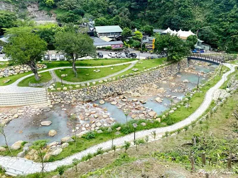 附近有步道可以享受森林浴,還有看起來很新的河道景觀,這些走路就可以抵達;移動遠一點還有龍鳯谷可以去感受硫磺味