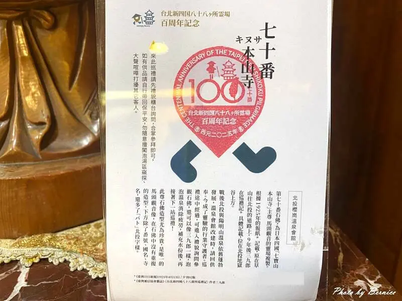 活絡台北新四國遍路的發起者在FB/IG/短影音等處宣傳此文化,台北新四國遍路至今正好滿100年,發起集章抽獎活動,七十番亦是其中一處哦,印章就在溫泉會館櫃檯處,不是在石佛旁,別弄錯了哦
