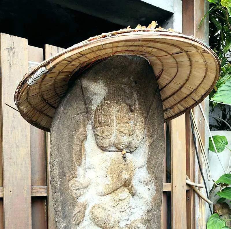 NO.70最讓人樂道的就是店家在雨天時會幫石佛戴上斗笠擋雨,可惜我到訪這天天氣還算不錯,所以沒見著戴斗笠的石佛;七十番位在店家裡,所以可以詢問櫃檯人員,如已知曉也別忘了告知一聲再入館;入館右轉後一路向下階梯到底後再右轉涼亭旁即是石佛安居所,石佛位在一帶點日式風的角邊,很容易找到