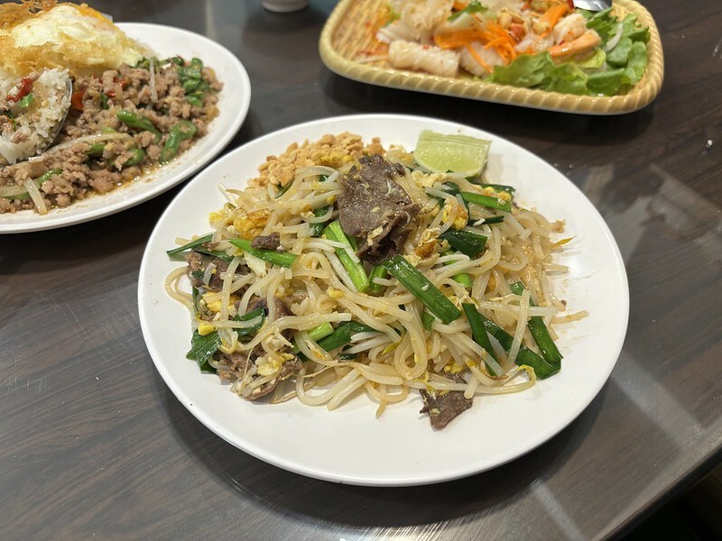 新莊平價泰式小吃推薦!「蓮花泰式小吃店」實在太好吃啦~餐點口味道地,泰式炒河粉、打拋豬肉飯、涼拌海鮮都美味。重點是價格實在、份量也多,用餐時段幾乎天天客滿,是在地人也愛的高CP值泰式小吃店。座位數充足,從6至8人的大圓桌,到4人方桌通通有,不論是家庭聚餐還是朋友約吃飯都很合適。