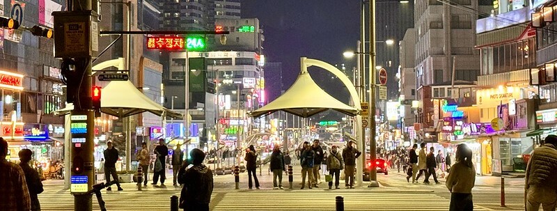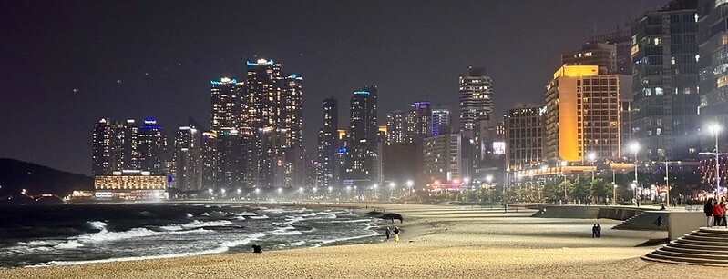 海雲台海灘的夜景,下一篇我們分享附近非常好吃的生醃海鮮「尾浦家미포집:醬蟹專門店」再來聊,今天先去逛逛人潮擁擠的海雲台夜市。