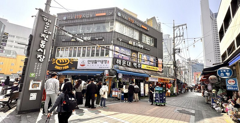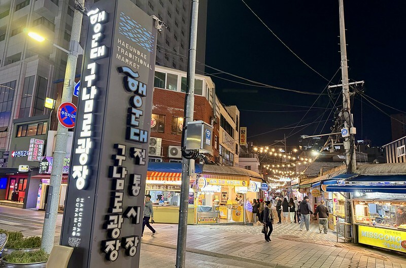 海雲台夜市位於晚上熱鬧如西門町的「海雲台大道」(海灘這側),另一邊則是海雲台市場的入口,