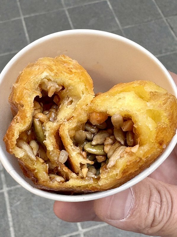 有一說一,韓國我去的次數不算多,首爾四五次,濟州島一次,這次的釜山也是大姑娘上花轎頭一遭,吃過的糖餅應該不下五次,老實說我覺得它是好吃的,但跟其他家好像也沒太多不同....硬要說好像比較酥Q軟,比較順口,裡面的松子非常多,但同樣有吃多甜膩和油膩的問題。