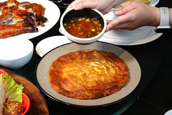 如果你是無蛋不歡的蛋控,真的會超愛這烘蛋!因為烘蛋不是那種薄薄一層煎得乾乾的蛋皮,它是厚厚的一大塊,蓬鬆又扎實,咬下去那瞬間,有種軟嫩又飽滿的滿足感,蛋香在嘴裡整個炸開來,根本就是蛋的極致呈現!
