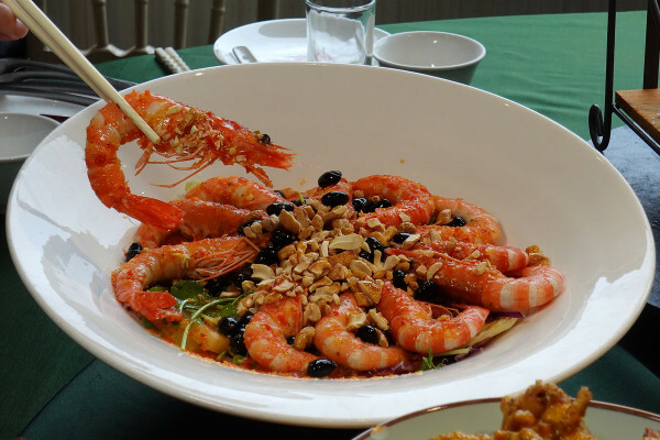 端上來的時候超繽紛,而且擺盤很精緻!泰式海鮮蔬果盤裡面有大蝦、甜黑豆、堅果,口感梗多層次,也更多了點高級感!