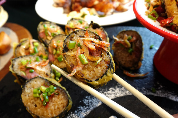 這道臘腸米糕真的讓我驚豔,咬下去的那一口,米糕軟Q中又帶點黏糯感,米粒是有彈性的,不會爛爛黏成一團,裡面還藏著切成小段的臘腸,香氣濃郁,裡面還有肉鬆跟櫻花蝦,口感超豐富,每咬一口都有那種鹹甜交錯的滋味,好像年節才會吃到的傳統好味道被重新包裝得更細緻、精緻。