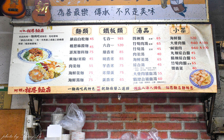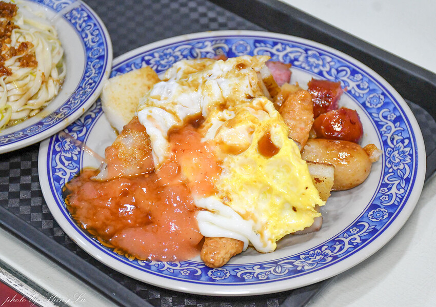 在地經營超過60年,目前已傳承三代,乾麵最大的特色就是一麵兩吃,餐點六合一,可以一次吃到蘿蔔糕、芋頭粿、糯米腸、香腸、煎蛋等六樣,旁邊就是知名的老賴紅茶,還有鄒餡餅蔥油餅也滿好吃的