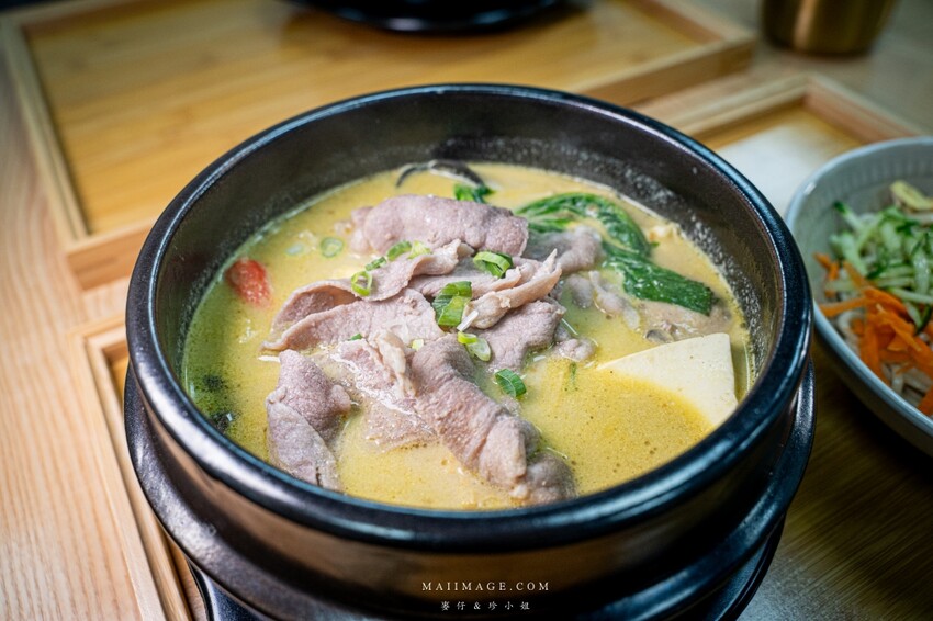 94咖哩孃板橋市府店的菜單項目簡單易選,提供兩種咖哩砂鍋煲供顧客選擇,不吃辣的朋友可點選「白雪砂鍋煲」,而喜愛辣味的朋友則可選擇「赤雪砂鍋煲」,肉品則可選牛肉或豬肉。其中,「白雪咖哩砂鍋煲」是以香料熟成咖哩與鮮奶共同熬煮而成,入口後香料的辛香味會在舌尖慢慢竄出,尾韻則是溫和的奶香味,完全沒有辣度且相當順口,溫和的咖哩湯頭單喝或拌飯都非常適合,越吃越有味道且不易膩口。若想挑戰辣度,「赤雪咖哩砂鍋煲」則帶有小辣以上的辣度,但卻不會辣到不舒服,是那種帶有後勁的尾韻口感,一入口即能感受到香料熟成咖哩強烈的存在感,尾韻則有辣勁包覆舌尖,讓人忍不住一口接一口,其辣味富有深度、層次分明、香味繚繞。
