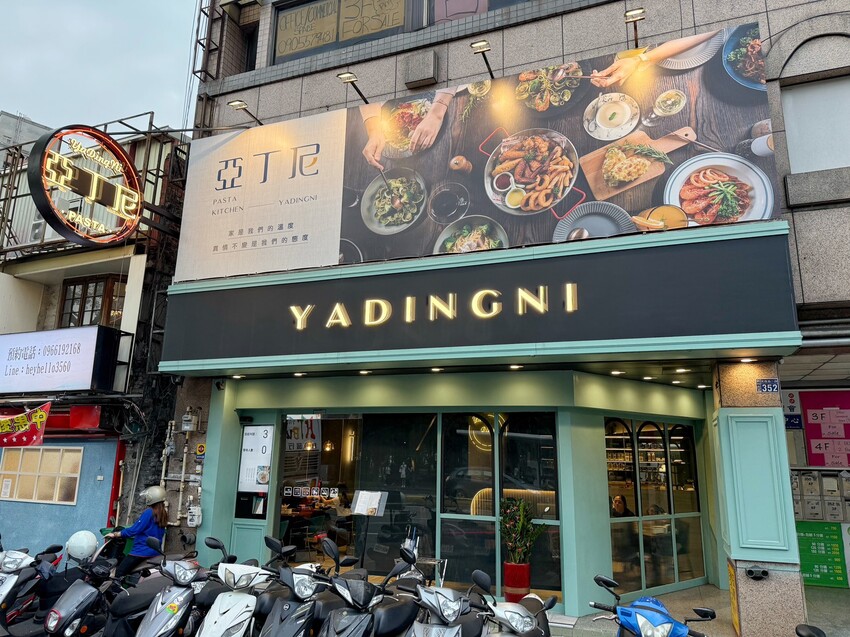 「亞丁尼義式麵屋 清大店」就位在新竹清大校門口斜對面,Tiffany綠英倫風的店外觀,走過、路過不易錯過!開車來建議停在店後方的「俥亭停車-光復停車場」,收費便宜又很近,但注意一下只能逼悠遊卡喔!
