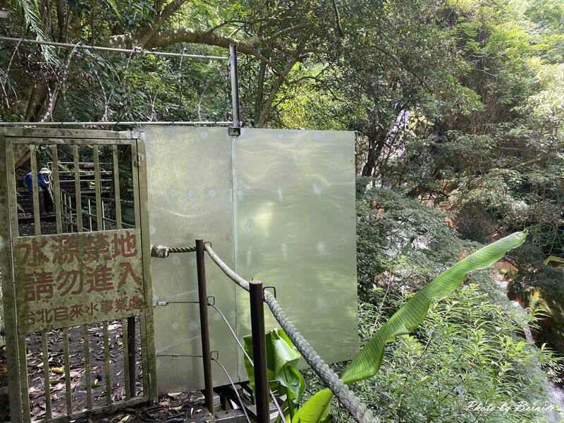 想要與藍寶石泉近距離接觸,得先走一段步道,多數人是從半嶺步道松溪瀑布這端進入,我們就是從這裡進入的;另一端出入口接文化大學或天母水管步道,我們是從文化大學這離開的,需要點腳力,我喘到沒空拍這看不到盡頭的長上陡坡階梯