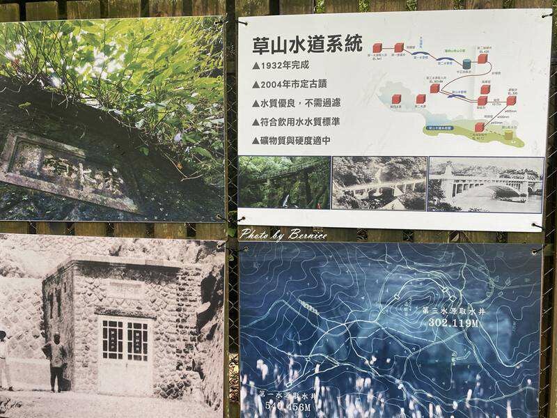 草山水道系統約為西元1928年至1932年創建。本系統為日據時期因應臺北人口急速成長,必須開發新的水源,日人經勘查草山地區3處水源時,在考量水質、水溫、水量、穩定性及無硫磺污染等因素後,決定採用第1、3水源;這2處水源,水質純淨甘美,無需過濾、沉澱等處理,經加藥後即可直接飲用,是全臺灣最優良的自來水系統。草山水道系統為全臺灣第1個設置自來水水管橋的水道系統,也是唯一於系統內包含水力發電的水道