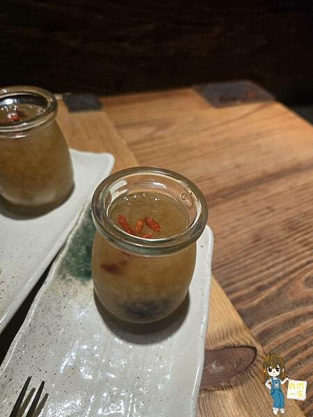 餐後會有一道「養生湯盅」,湯色澄澈、味道甘甜,溫潤且不厚重,是真正讓身心靜下來的收尾之湯。甜點一是「日式蕨餅佐黃豆粉」,Q彈滑順,帶有淡淡的甜香,讓整場餐敘在低調溫柔中接近尾聲。最後的甜點是「養生白木耳甜湯」,這道甜湯潤口,為整餐畫下句點,就像最後一筆淡彩一樣。