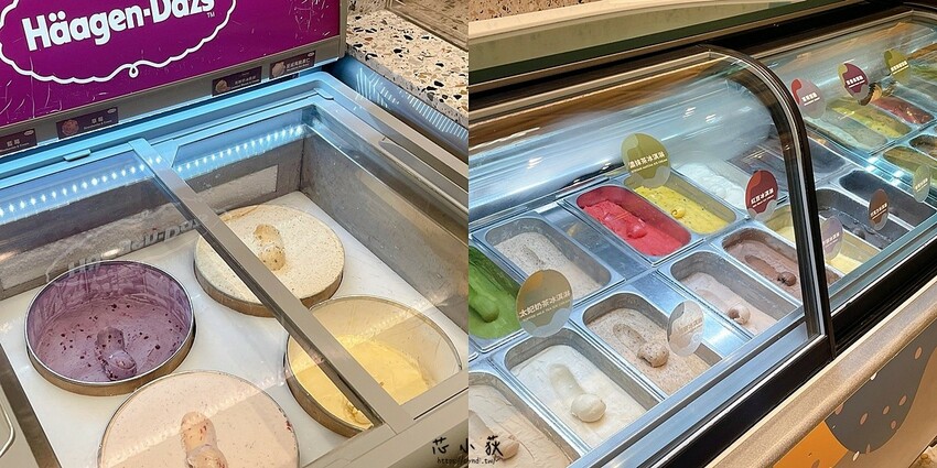 冰淇淋區口味有藍莓、草莓、焦糖奶油脆餅、夏威夷脆果仁、太妃奶茶、杏仁燕麥、濃抹茶、紅豆、芋頭、巧克力、香草、草莓雪酪、百香果雪酪、蜂蜜檸檬雪酪、芝麻燕麥等。