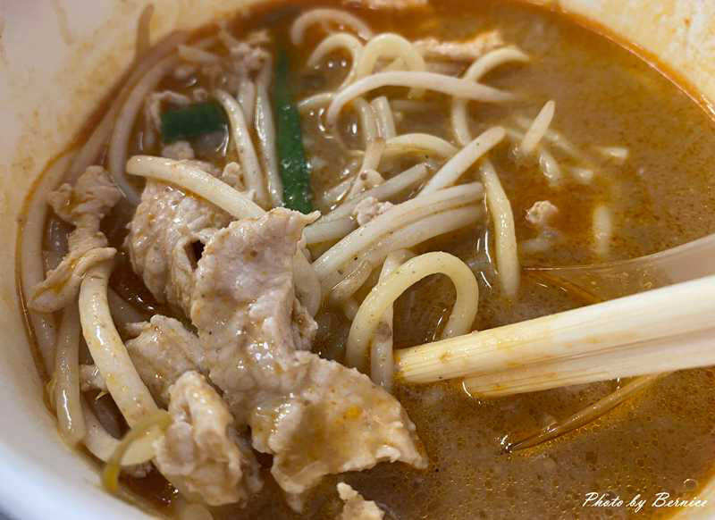 不管你在店內享用還是外帶走,都是免洗餐具,這是唯一美中不足的,或許是食客太多,這樣就沒有清洗問題;因為是第一次品嚐,所以選了最簡單的瘦肉麵,雖然沒有朋友的來得豪華,但肉不柴、麵條Q、湯頭濃郁,這一碗的滋味也讓人回味