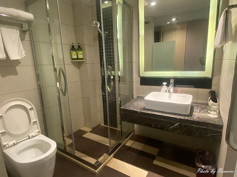 升等後的房間是有的窗戶的,還可以打開哦;房間裝修走簡約商務風,淺木色調搭配米白色床品,乾淨清爽;這回出門我忘了帶延長線,好在酒店的插座充足還配有USB接口,對於有不少需要充電的我來說太貼心了;浴室是乾濕分離的設計,水壓充足,熱水來得快,備品是酒店自有品牌,香味淡雅不刺鼻