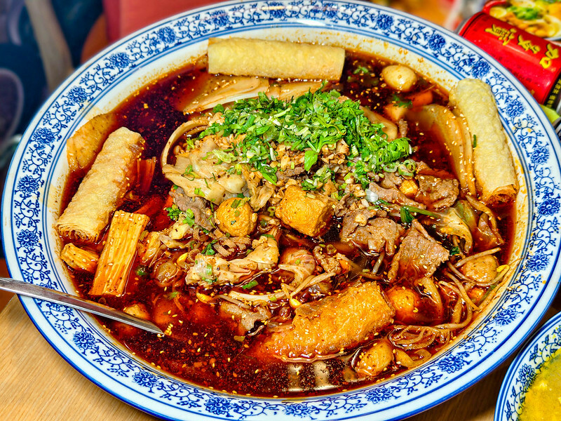 除了個人冒菜,冒香香逢甲店還有一個超驚豔的隱藏版「土豪鍋」,這是四人份的巨無霸尺寸,裡面裝滿了手工寬粉、鴨腸等二十種豐富配料,絕對是朋友聚餐時必點的大份量選擇,湯底看起來也特別刺激夠味。另外,這裡還有一個很有創意的「冒豆花」,把滑嫩豆花淋上辣油,顛覆了大家對甜食的傳統認知,聽說非常厲害,讓人很想嘗試看看。第一次吃到四川冒菜的人,可能會以為它跟麻辣燙差不多,但實際吃起來感受很不一樣,冒香香逢甲店的每一碗份量都超級多,讓人吃得非常過癮,常常多到吃不完還要打包回家。