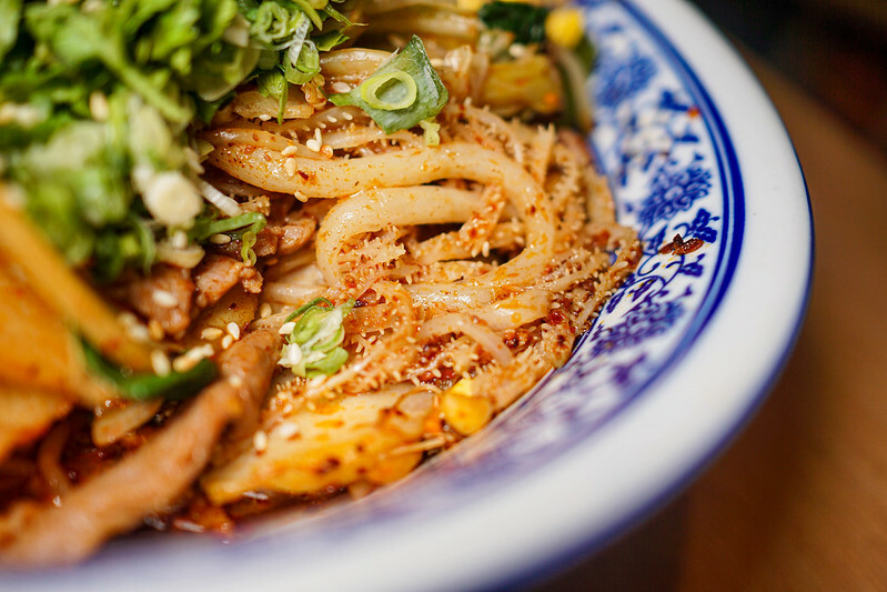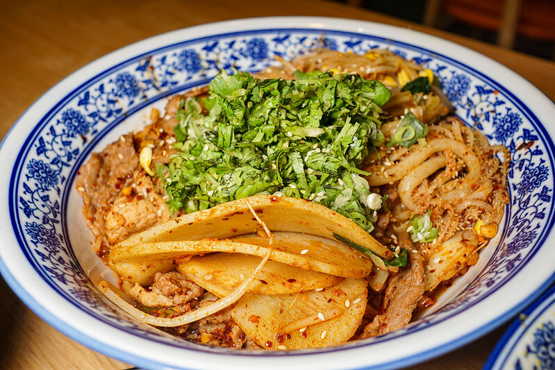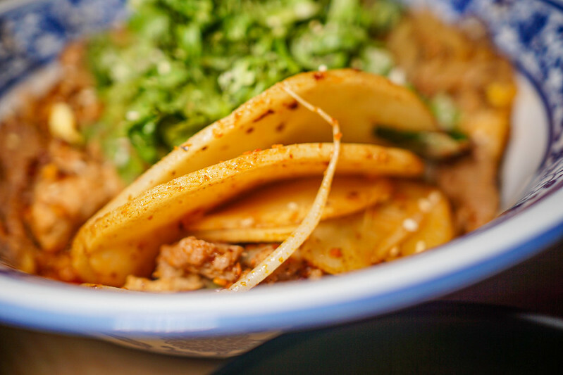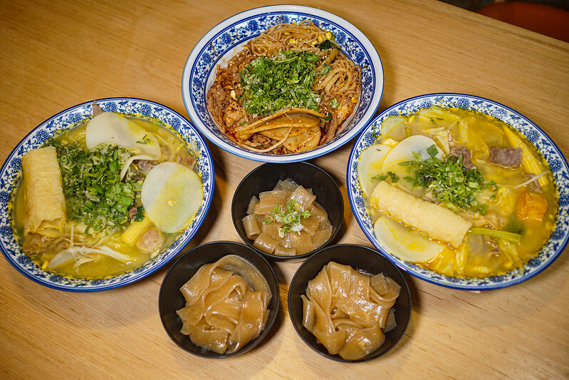 冒香香逢甲店的菜單選擇很多元,主要有四種冒菜口味。湯的有經典紅油冒菜、鮮香金湯冒菜、酸爽金湯冒菜這三種,另外還有乾拌版的紅油乾拌冒菜。經典紅油冒菜是必點,鳥蛋、豆腸、響鈴捲吸飽了濃郁湯汁,堆得像小山一樣豐富。辣度可以依照個人喜好調整,從小朋友都能接受的「微麻」到挑戰極限的「大辣」通通有。如果不太吃辣,也可以選擇酸爽金湯冒菜,它的酸香湯頭搭配好料,滋味一樣很棒。而紅油乾拌冒菜,則是四川當地很經典的吃法,因為冒菜湯底比較濃郁,傳統上不太喝湯,食材都能煮得恰到好處,像軟嫩美味的毛肚、入味的肉片,還有特別的紅薯寬粉和台灣味的豬血糕,都讓人驚艷,整體價格也不會太貴。