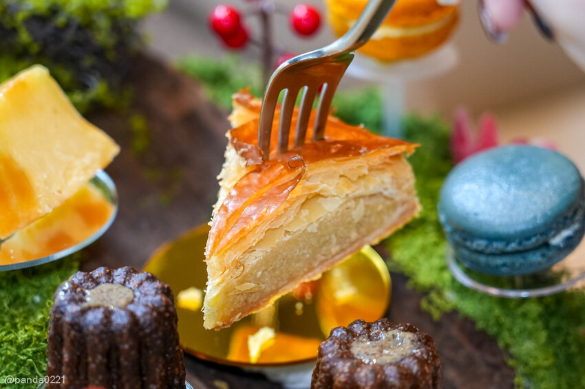 這款國王派是法國節慶才會出現的經典甜點,主廚選用法國AOP認證奶油、手工層層堆疊的酥皮,一吃就知道有多用心。內餡是香濃的杏仁加榛果,口感紮實但不會太甜膩。另有6吋尺寸可供選購,很適合全家人一起分享,不只能吃甜點,更能一起感受節慶的儀式感與溫馨氛圍。