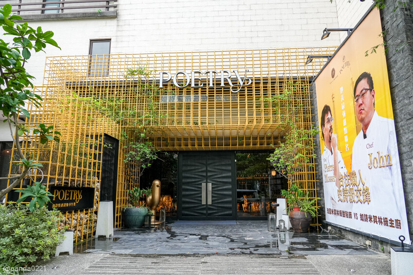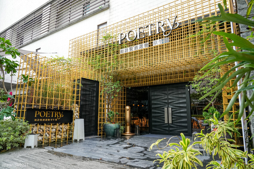 Poetry如詩位在台北大直堤頂大道二段,鄰近捷運劍南路站,步行約12分鐘可抵達。開車也很方便,附近有城市車旅停車場,店門口也有一排路邊停車格。整棟建築採挑高設計,搭配大片玻璃與綠意植栽,外觀清新又吸睛,是經過也會想多看一眼的質感系餐廳。