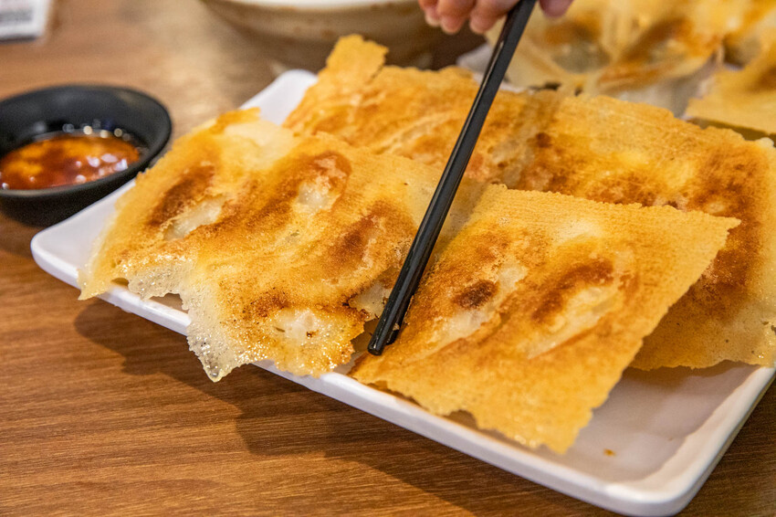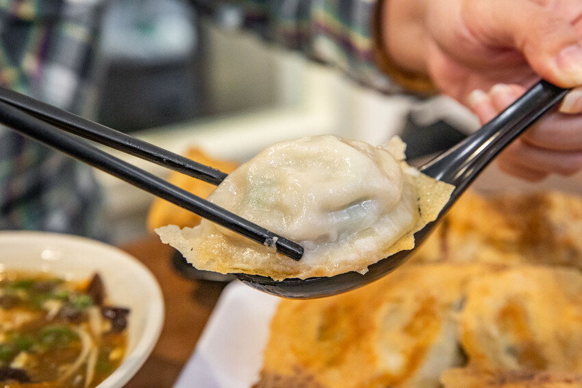 中壢青埔隱藏版美食「來甲餃子」,他們的冰花煎餃,外皮酥脆內餡爆汁,用餐時段人潮爆滿。