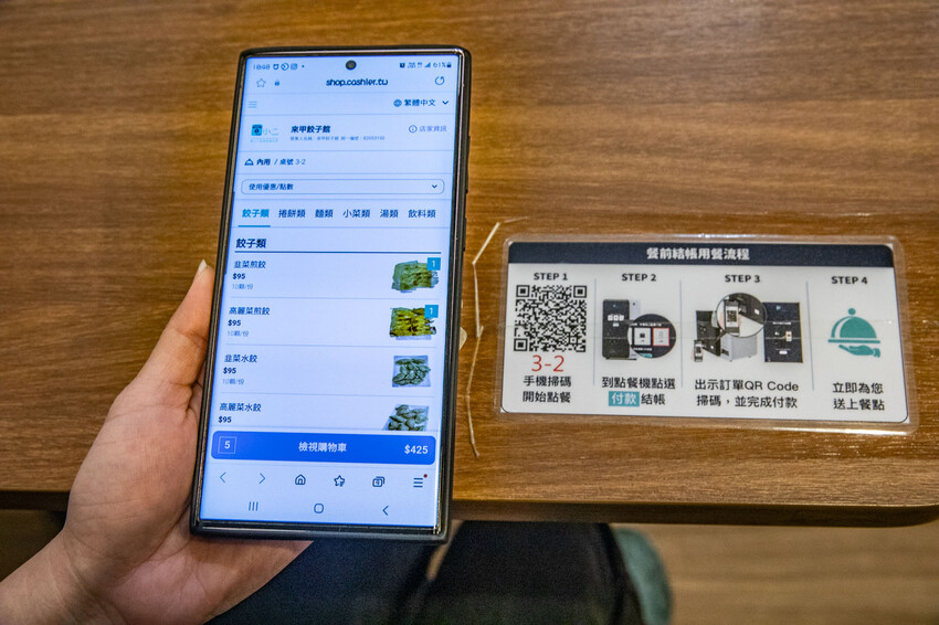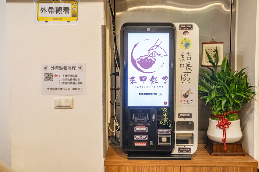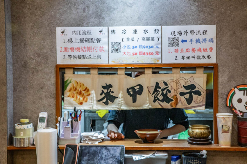 來甲餃子就在青埔國民中學的斜對面,附近的路邊停車格還蠻多的,停車非常方便喔。由於來甲餃子生意真的超級好,就連平日也是滿滿的客人,如果您打算外帶,建議最好先利用線上點餐系統預訂,因為餐點都是現點現做,需要花一點時間等待。在來甲餃子內用,您可以使用桌上的QR碼點餐,點好餐後,記得要到點餐機自助付款,付完錢後就會拿到一張單子,上面清楚列出您點的餐點品項跟價錢,接著就等店員幫您送餐囉,外帶模式也差不多,等叫號就可以取餐了,如果操作上有任何不清楚的地方,也可以直接詢問店員,他們都會很熱心地協助您。