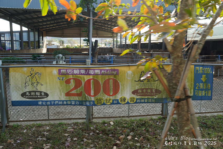 搭乘五分車的途中會經過高雄市馬術協會,看到了好多大大小小可愛的馬兒,如果對騎馬有興趣也可以來體驗騎乘喔!門票 $100元/人,2張票卷可騎乘1圈,馬匹騎乘/每圈 $200元